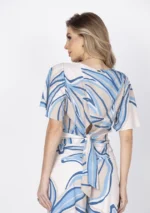 Esse cropped é confeccionado em tecido leve e estampado, trazendo frescor e personalidade ao look