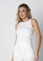 Confeccionada em malha canelada premium de viscose com elastano, ela tem aquele toque macio e fresco, além de um caimento impecável no corpo.